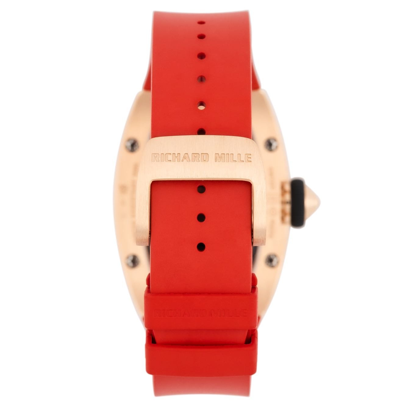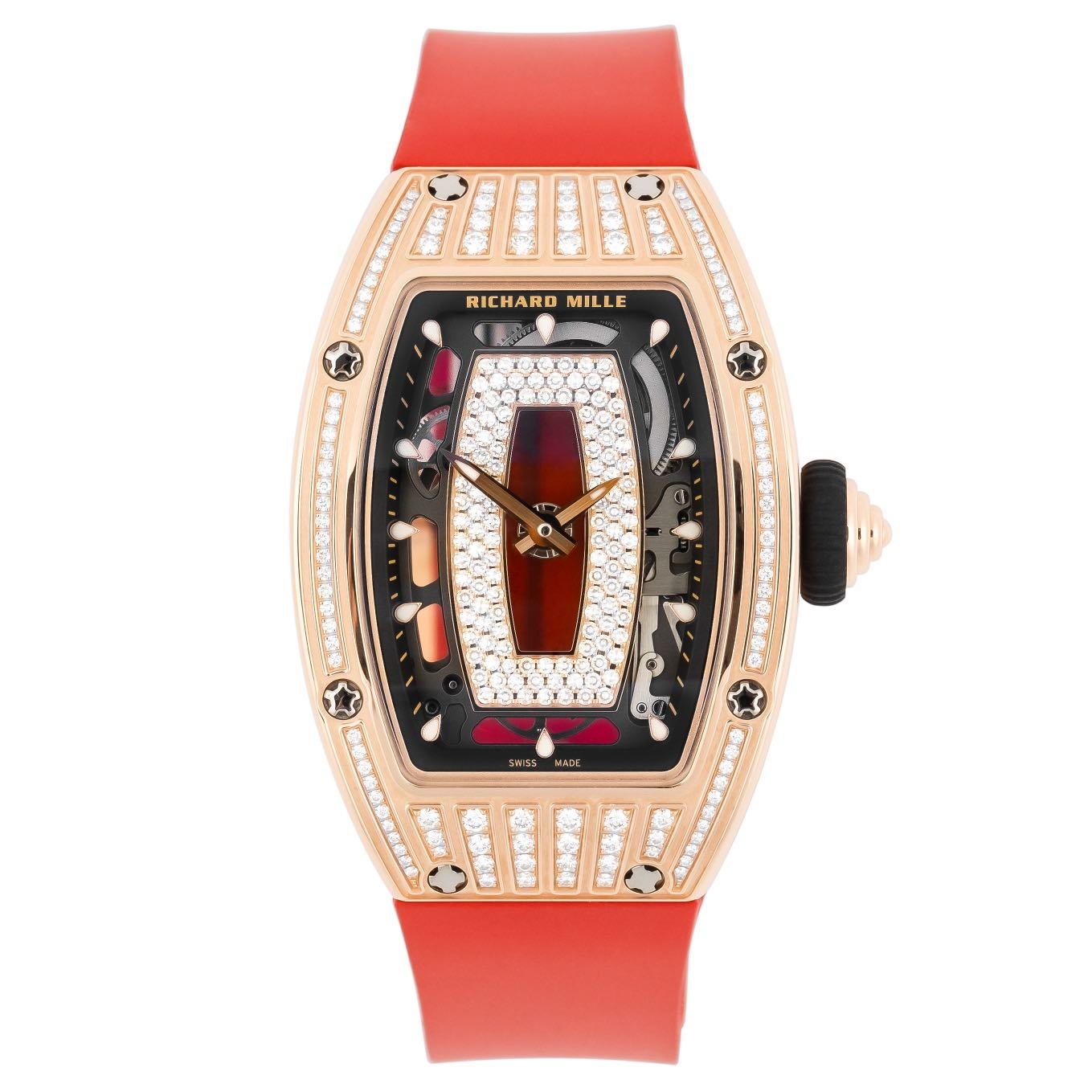 The Richard Mille RM07-01 rosegold medium set diamonds is a luxurious and highly sought-after timepiece known for its exceptional craftsmanship and innovative design. The RM07-01 model in rose gold with a jasper dial and factory-set diamonds is an exquisite variation of this iconic watch.