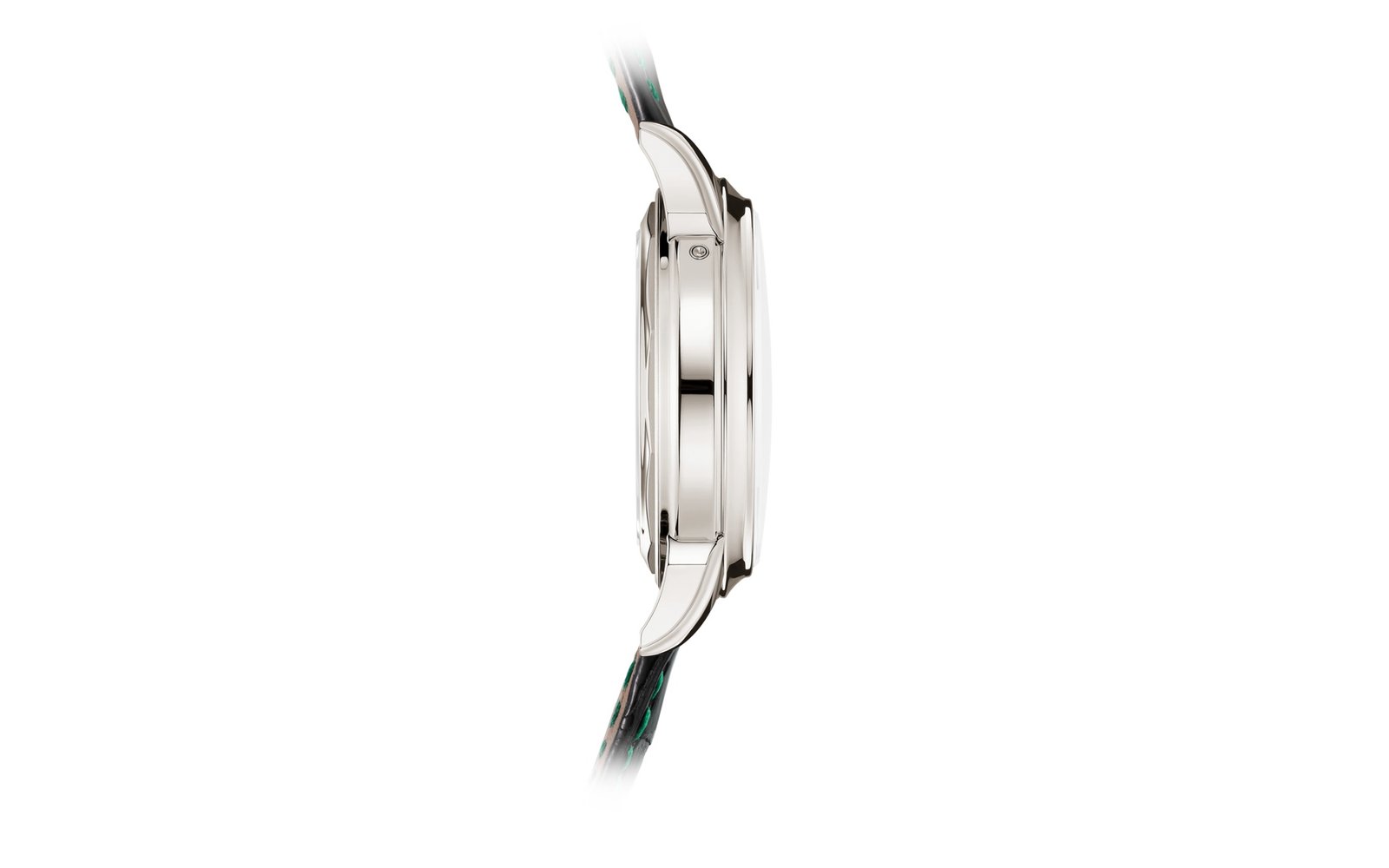The main object of the crime (for some) or desirable element (for others) in this new Patek Philippe 5270P-014 is this absolutely stunning and fascinating dark green, gradient, glossy dial paired with pure-white scales and tracks that highly contrast with the background. It’s bold, it’s fresh, it completely changes the 5270, a watch that has been on the restrained side for more than 10 years.